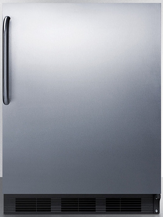 The FF6BK7CSSADA is a 32" high all-refrigerator with a full 5.5 cu.ft. capacity inside a slim 24" footprint. The front-breathing design allows built-in use under counters, while the fully finished cabinet also lets this unit be used freestanding. This model comes with a fully wrapped stainless steel cabinet and door. A curved towel bar handle completes the professional look. The FF6BK7CSSADA is ETL-S listed to NSF-7 standards for use in commercial establishments. For more finish options, browse the entire FF6BI7ADA Series.