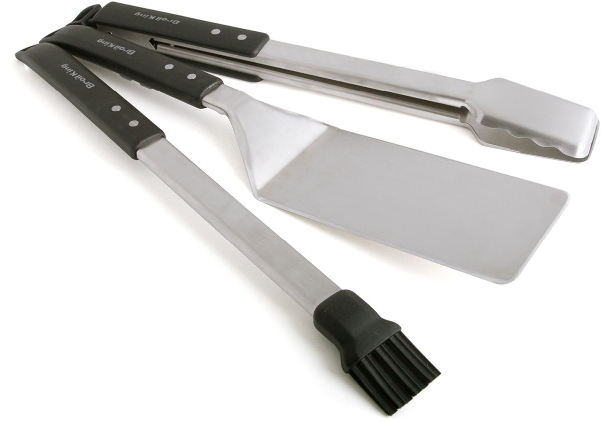A 3-piece premium tool set with turner, tong, and basting brush. Large resin handles with contrasting under-mount grips and logo. Durable box-shaped shafts and integrated hanging hooks.Read More