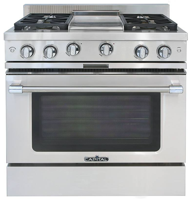The Capital Chef’s collection 36" Range expands your culinary options. Customize the layout by replacing two of the six burners with a 12" Thermo-Griddle™ or BBQ gril, or replacing four burners with a 24" Power Wok, alowing for a variety of cooking techniques in one range.Read More