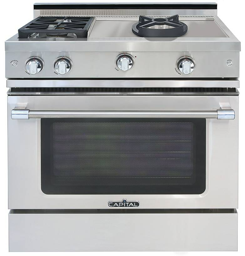 The Capital Chef’s collection 36" Range expands your culinary options. Customize the layout by replacing two of the six burners with a 12" Thermo-Griddle™ or BBQ gril, or replacing four burners with a 24" Power Wok, alowing for a variety of cooking techniques in one range.Read More