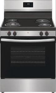 This Frigidaire 30 in. Freestanding Electric Range offers a 5.3 cu. ft. capacity oven and a 4-element electric cooktop featuring two 8 in. and two 6 in. coil elements, so you can cook more at once. The cooktop includes indicator lights that let you know when it's still hot, while the large oven window allows you to easily monitor food as it bakes.Read More