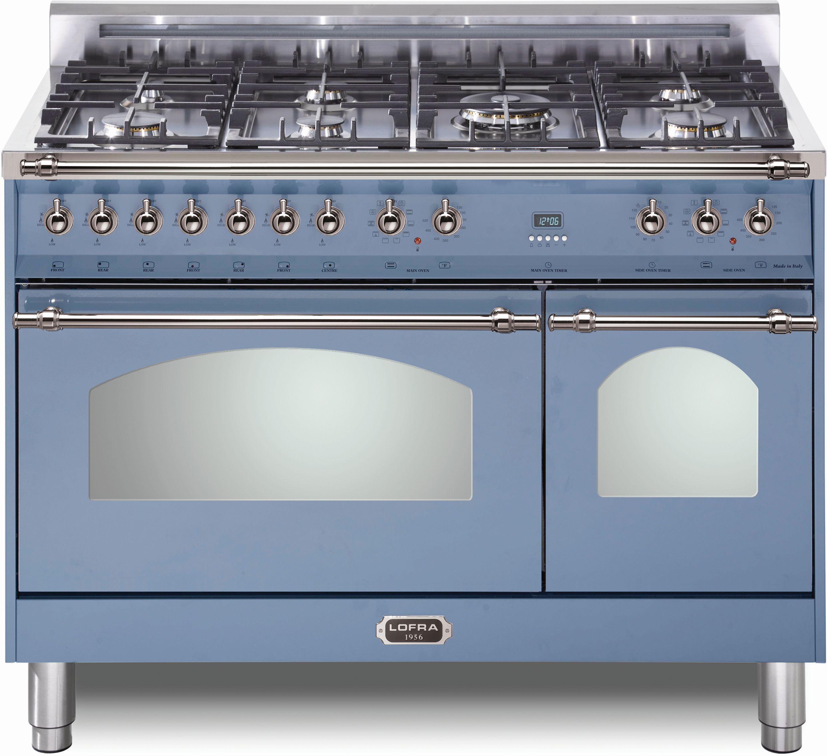 LOFRA® Dolcevita 48" Lavender Pro Style Dual Fuel Range features 7 brass burners and matte black burner caps, ventilated doors with Cooling System, height adjustable stainless steel legs, and a large multifunction convection oven: 9 cooking modes.Read More