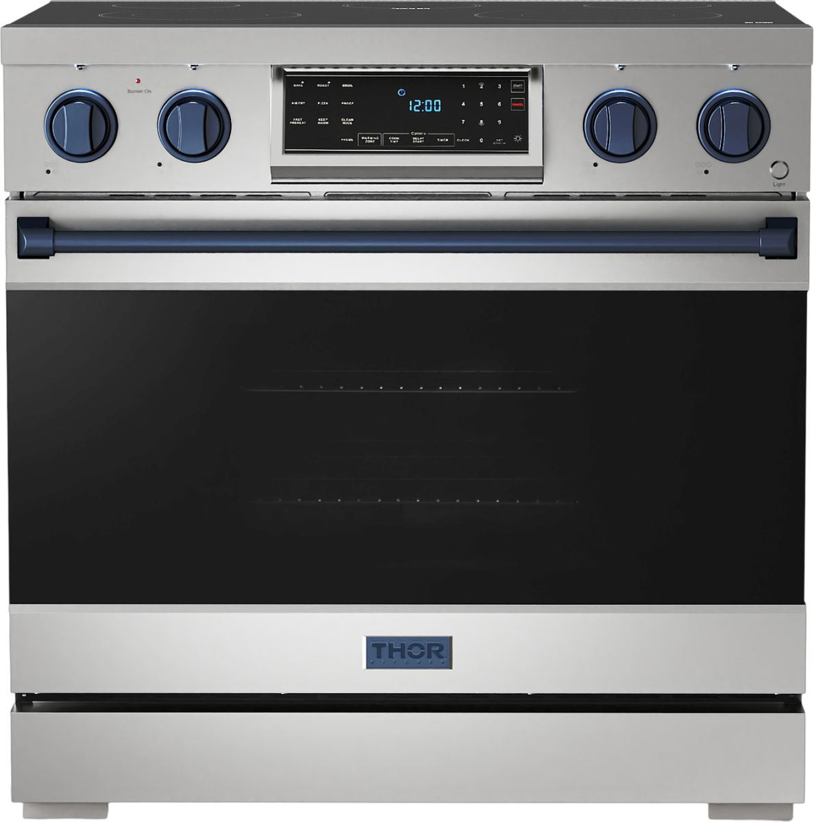 Designed for chefs who demand precision and power. With high-output burners, even heat distribution, and intuitive controls, this 36 Inch Professional Electric range in Stainless Steel/Navy Blue elevates your cooking experience. Built for durability and performance, it brings restaurant-grade quality to your home kitchen, making every meal exceptional.Read More