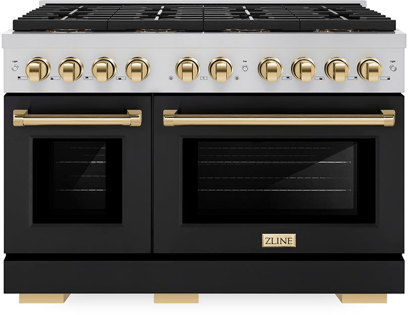 Luxury isn’t meant to be left desired—it’s meant to be attainable. The ZLINE Autograph Edition 48 in. 6.7 cu. ft. Paramount Gas Range with 8 Burner DuoPro™ Cooktop and Dual Ovens with Black Matte Doors and Polished Gold Accents (PSGRZ-BLM-48-G) features a high-powered gas cooktop with 8 hand-crafted Italian dual-ring brass burners and a versatile gas convection oven allowing you to master every meal. Double your cooking power on every burner with a DuoPro™ Cooktop that delivers ultimate flame control flexibility and unprecedented culinary confidence.Read More
