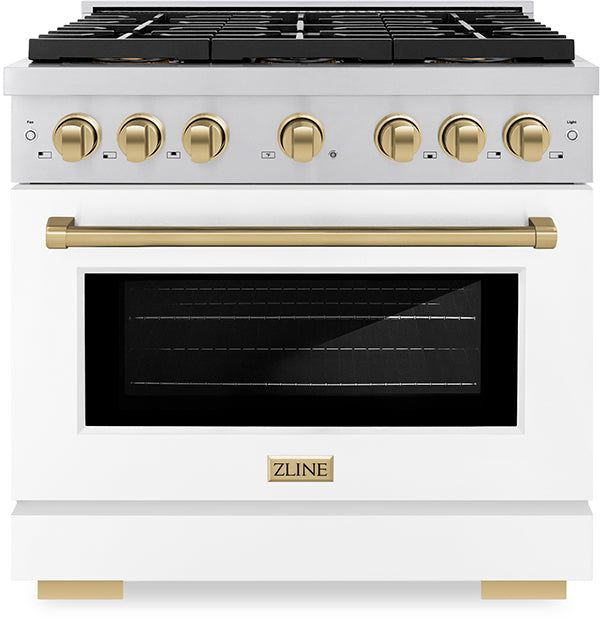 Luxury isn’t meant to be left desired—it’s meant to be attainable. The ZLINE Autograph Edition 36 in. 5.2 cu. ft. Paramount Gas Range with 6 Burner DuoPro™ Cooktop and Convection Gas Oven with White Matte Door and Champagne Bronze Accents (PSGRZ-WM-36-CB) features a high-powered gas cooktop with 6 hand-crafted Italian dual-ring brass burners and a versatile gas convection oven allowing you to master every meal. Double your cooking power on every burner with a DuoPro™ Cooktop that delivers ultimate flame control flexibility and unprecedented culinary confidence.Read More
